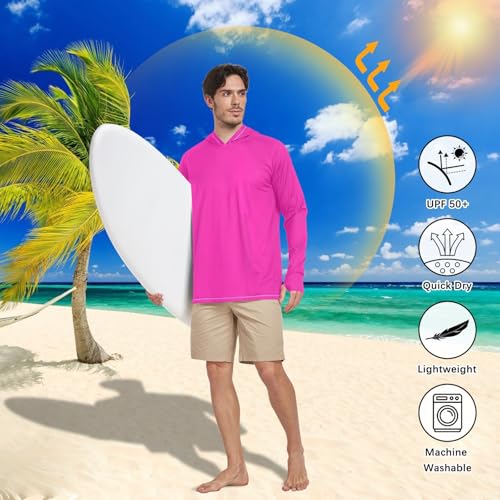 Fabric type: 90% Polyester, 10% SpandexClosure type: Pull OnNeck style: Hooded NeckSleeve type: Long Sleeveγπππ ππ+ πππ ππππππππππγ: Safeguards skin from harmful UVA/UVB rays, keeping you cool and cozy under direct sun exposure with our SPF 50 Shirts for Men.γπππππππππππ & ππππππππππγ: The ultra-soft, lightweight fabric in this quick dry long sleeve shirt men ensures a cool touch and superior skin comfort for all-day freshness.γππππππ & πππππ ππππ ππππππγ: The hoodie on this Long Sleeve Tshirt provides extra neck protection, while thumb holes ensure sleeves stay in place for added sun defense.γπππππππππ πππππππ πππγ: Ideal for activities like hiking, kayaking, biking, beach vacations, or casual walks, this men's long sleeve shirt ensures you stay protected.γππππ ππππγ: Machine washable fabric; avoid bleach and dry cleaning for long-lasting durability and performance of your light hoodies for men. Perfect for everyday use. first-class materials and excellent craftsmanship ensure long-lasting durability.
