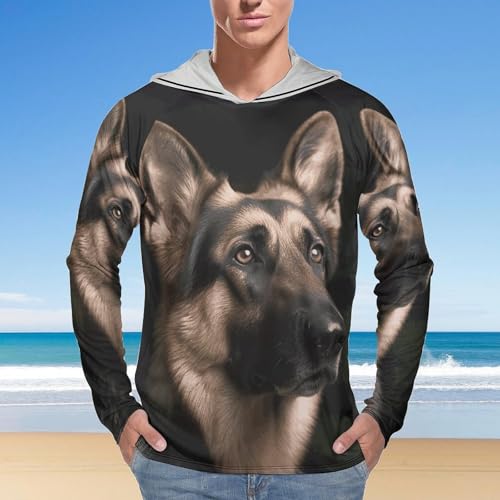Men's Sun Shirts UPF 50+ Rash Guard Long Sleeve Sun Protection Hoodie German Shepherd Lightweight Shirt S White 6