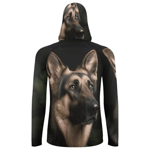 Men's Sun Shirts UPF 50+ Rash Guard Long Sleeve Sun Protection Hoodie German Shepherd Lightweight Shirt S White 1