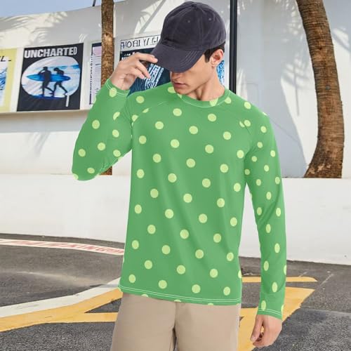Polka Dots Green Mid Century contemporary Men's Rash Guard Fishing Comfort UV Protection Long Sleeve Water Fishing