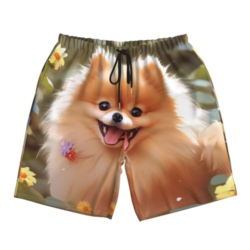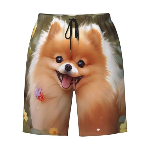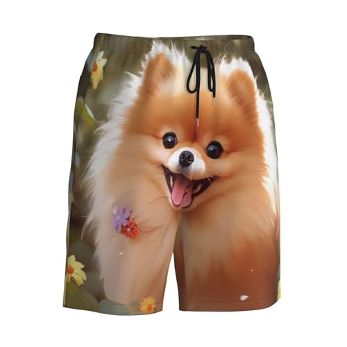 Pomeranian Dog Print Men's Beach Pants Lightweight swift-Dry Swim Pants with Mesh Lining for Men