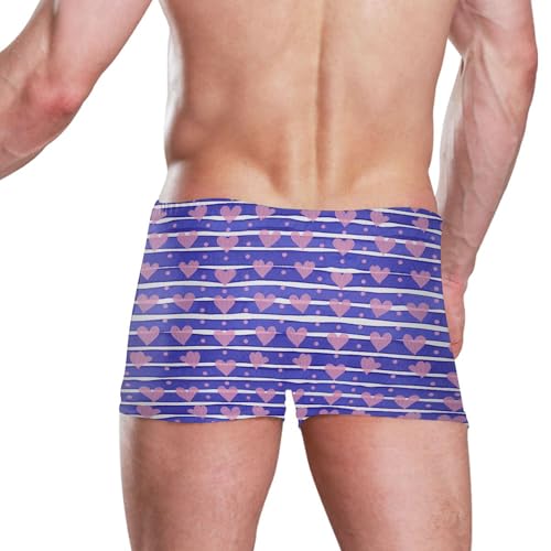 Pink Heart Blue Stripes Mens Swim Trunk Swimwear Bathing Suit Swim Brief Square Leg Board Short S B0404745 3