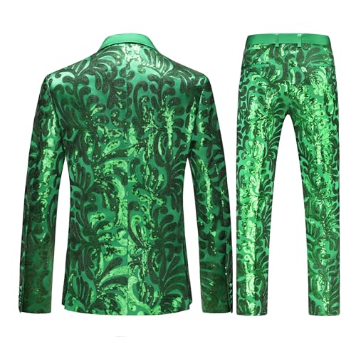 Men's Sequin Suit Set – Slim Fit Wedding Suit 2 Piece, One Button Floral Tuxedo Blazer & Pants for Party, Prom, Disco 7