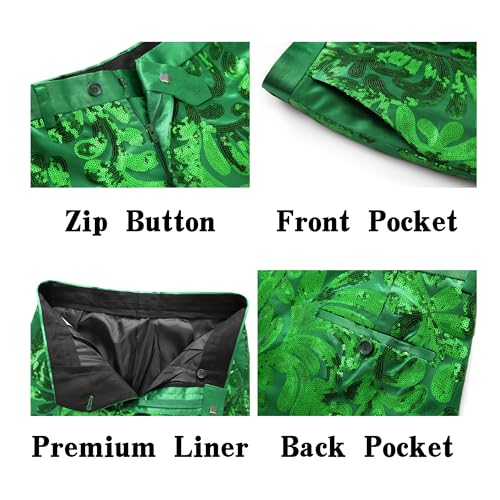 • 【Eye-Catching Sequin Blazer & Pants】The slim fit 2 piece suit feature floral sequin pattern for a bold, eye-catching look. The tuxedo sequin jacket feature one-button, notch lapel, flap pockets, refined cuffs, double back vents, and hidden shoulder padding, while the dress pants have a zipper & button closure and four functional pockets for style and convenience