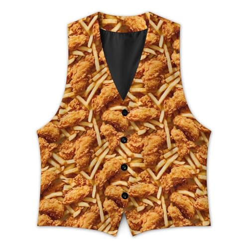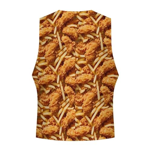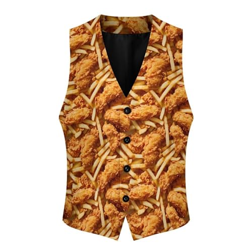 Chicken Strips French Fries Suit Vest for Men Slim Fit Tuxedo Waistcoat Button Down V Neck Business Dress Coat