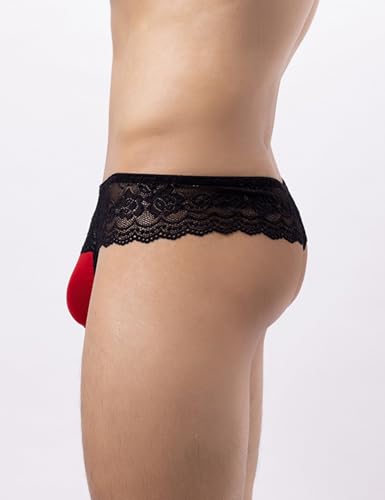 Mens Sissy G String Thong Underwear Panties Sexy Lace Low Rise T-back Underpants Bikini Cheeky for Men M-2XL 6