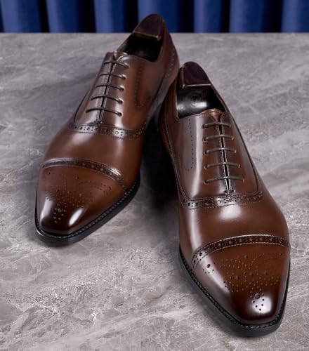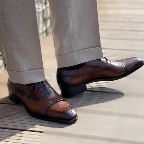 Mens Oxfords Dress Formal Shoes Genunie Leather Semi-Brogues Oxford Fashion contemporary Business Casual Derby Prom Wedding Suit Shoes Tuxedo Shoes for Men
