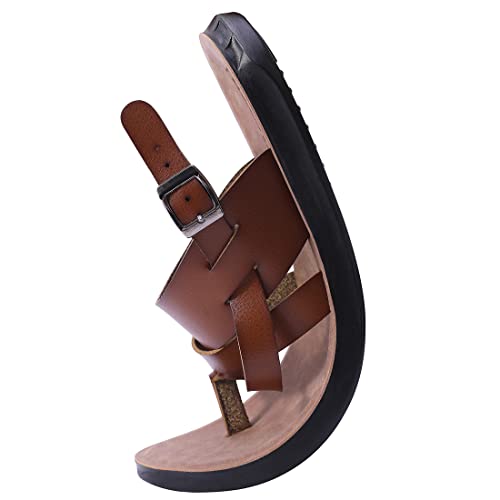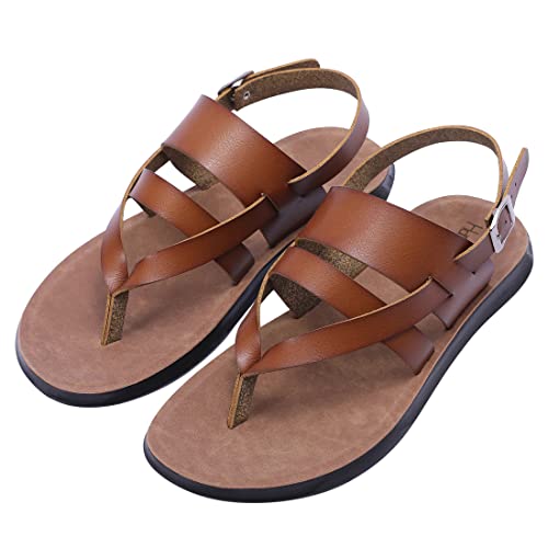 Harssidanzar Mens Leather Sandals,Summer Comfy Outdoor Adjustable Ankle Strap Flat Slip On Sandals For Men's KM218